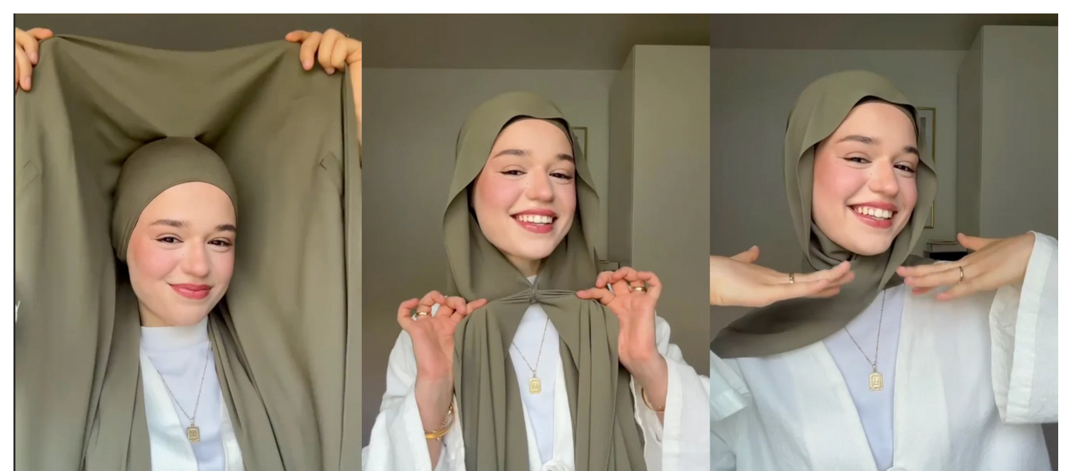 under your chin to secure the hijab — no pins needed.